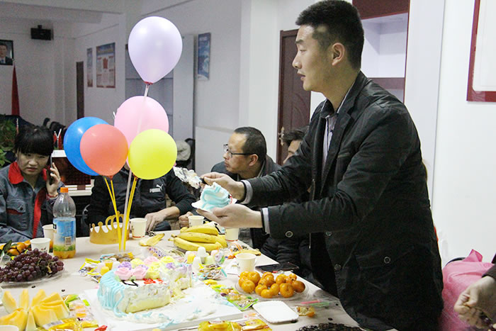 綜合部為大家準(zhǔn)備了新鮮的水果和美味的生日蛋糕,壽星們歡聚一堂,你一言我一語無不顯露著家人般的溫暖與關(guān)懷。