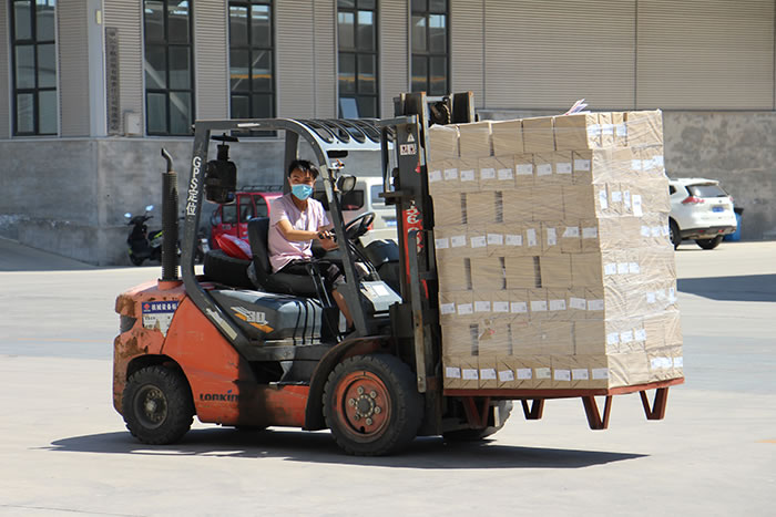 上圖為庫房搬遷現(xiàn)場叉車裝卸圖書