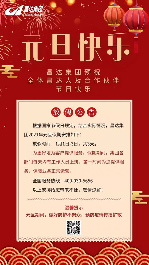 昌達(dá)集團(tuán)元旦假期公告